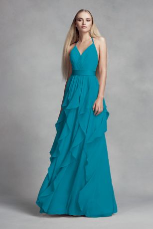 View David Bridal Ruffle Bridesmaid Dress Images. Mix and match these dusk inspired colors and more from our #dbmaids assortment to create your dream palette! Ruffle spaghetti strap chiffon bridesmaid dress.