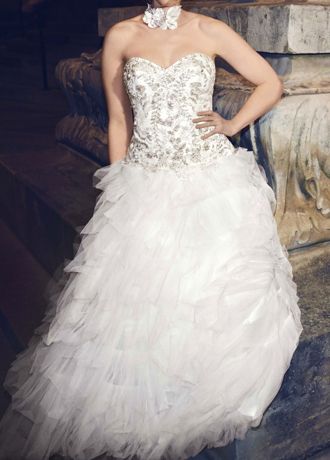 David S Bridal White Subtle Polka Dots On Ruffles Tulle Galina Strapless Dot Ball Gown With Skirt Style Pk3357 Feminine Wedding Dress Size 4 S 47 Off Retai Wedding Dresses Wedding from i.pinimg.com The trumpet fit itself was not dramatic and the high back was sheer, tapering to a point mid back with beautiful fabric buttons half way down the back. She fell head over heels for weddings in 2010 when she married the love of her life. David's bridal doesn't rent bridesmaid dresses either.