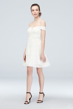 Off The Shoulder Stretch Glitter Lace Skater Dress David S Bridal from img.davidsbridal.com Aliexpress carries many beach off shoulder wedding dress related products, including wed dress 2019 , boho wed dress , beach bride dress 2018 , bridal. Lace wedding dresses bridal gown off the shoulder princess colorful dress. Keepsake in the silence dress bridal shower party wedding xxs designer short.
